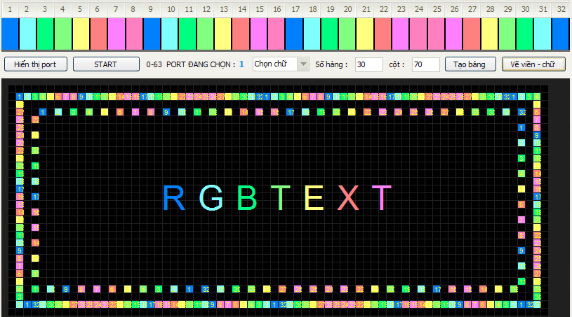 vd : 16 port -> port 1-5 :Red / port 6-10 : Green / port 11-15 : Blue, ghép lại port RGB 1 = 1+6+11